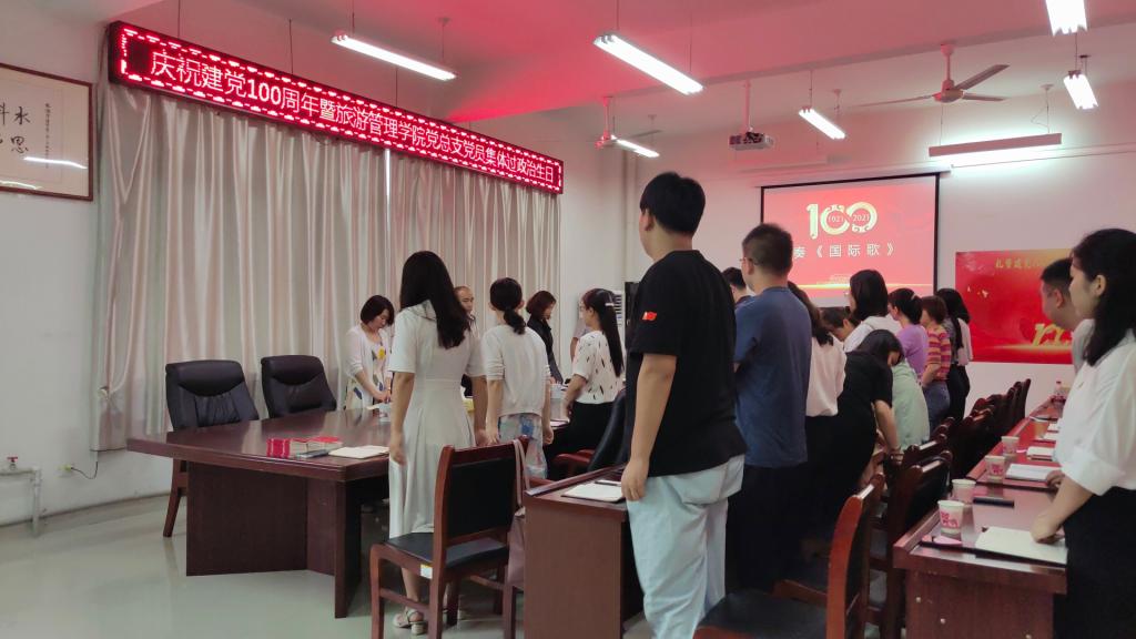 为庆祝建党100周年,扎实推进党史学习教育,6月27日上午,旅游管理学院党总支在1C502会议室开展“庆祝建党100周年暨党员集体过政治生日”主题党日活动。学院在校师生党员参加活动。活动由杜丽主持。