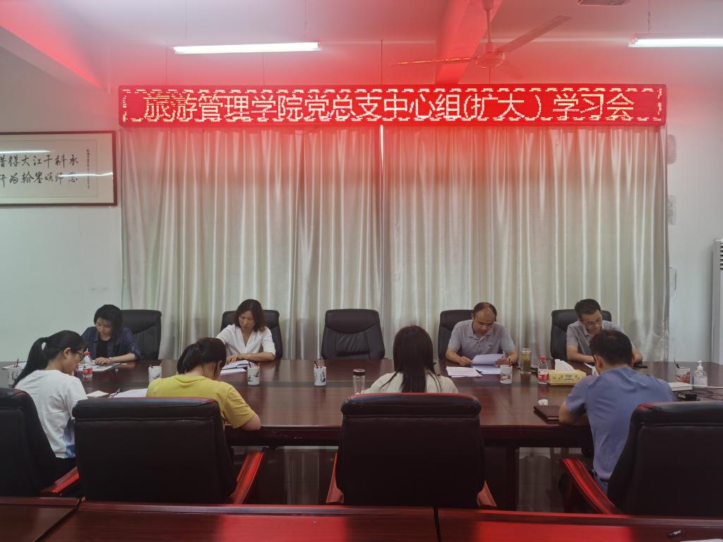 7月27日,旅游管理学院党总支在科技楼1C502会议室召开中心组(扩大)学习会。会议由院党总支书记陈建国主持,学院班子成员、党支部书记及科级以上干部参会。