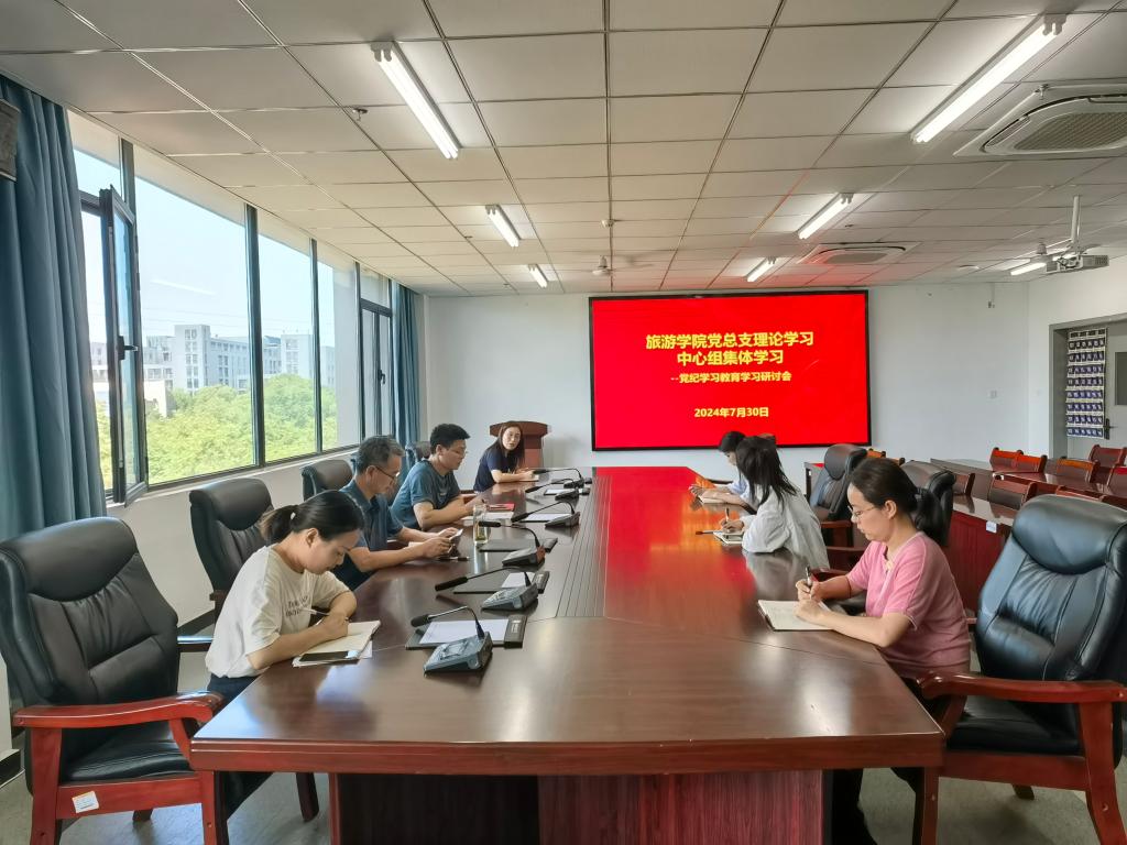 7月30日,旅游学院党总支召开理论学习中心组集体学习会,围绕几个月来的党纪学习教育,交流学习体会和收获。党总支书记朱长明主持并讲话,学院领导班子成员参会,相关科级干部列席会议。
