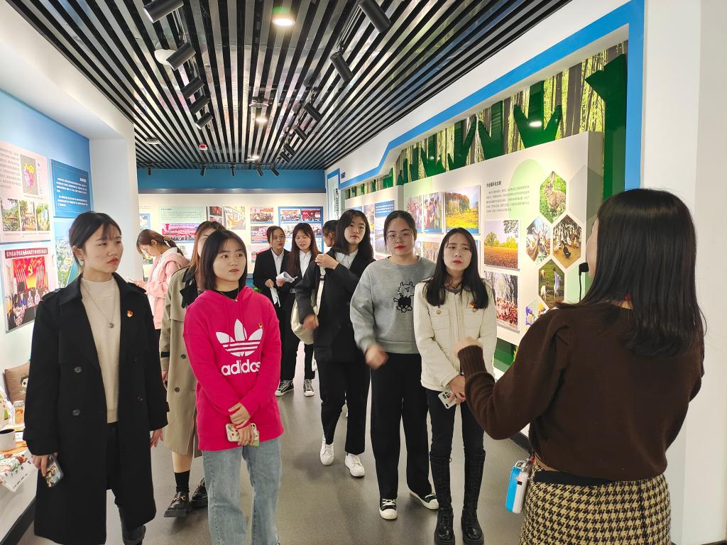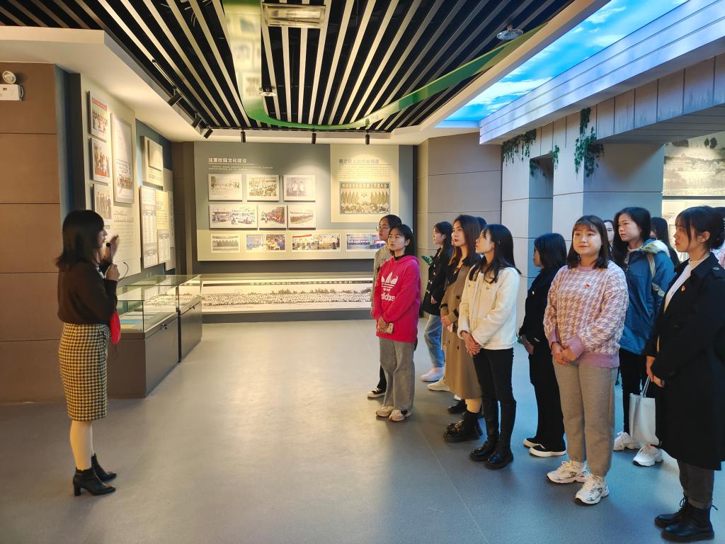 支部党员们从一楼大学生众创空间出发,依次参观了创客咖啡、大学生创新创业成果展厅、校史馆、耕读文化与乡村振兴展览馆、产教融合成果展厅、大别山生物多样性标本馆以及教师发展中心等。参观过程中教师党员王芳老师亲自为大家作讲解,使师生党员们不仅深入了解到百余年来一代又一代信农人始终与时代同行,与家国同心,不忘农林初心,致力于以农化人,以农助人,以农富人,扎根地方育英才的拼搏奋进历史,也深刻感受到了母校近年来在服务地方经济和产业发展以及助力乡村振兴方面所做的努力和贡献,进一步增强了对学校的历史文化自信及爱慕之情。
