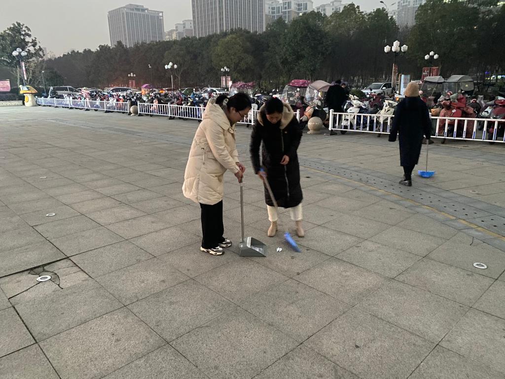 活动现场,在党支部书记于洋同志的带领下,党支部成员不顾冬日的寒冷,干劲十足、分工协作,发挥不怕苦、不怕累的精神,对恒大城市广场上的垃圾进行全面清扫,清除卫生死角。大家拿起工具认真打扫广场上、草坪上的纸屑、塑料瓶等垃圾,并将打扫的垃圾装进垃圾袋中。经过一个多小时的打扫,恒大城市广场焕然一新。