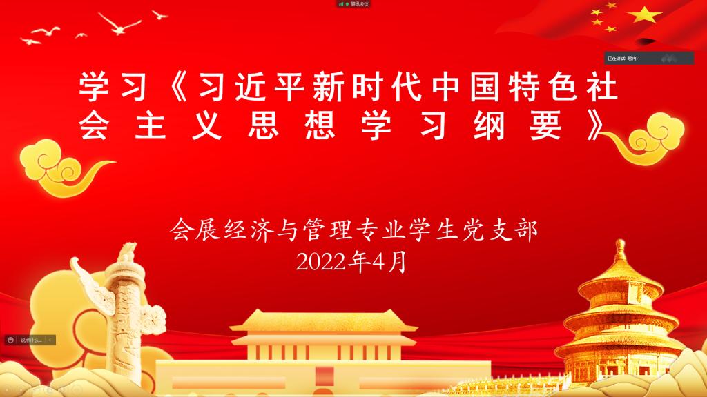4月22日,会展经济与管理专业学生党支部以腾讯会议形式开展4月主题党日活动—学习《习近平新时代中国特色社会主义思想学习纲要》。会议由支部书记易冉主持。