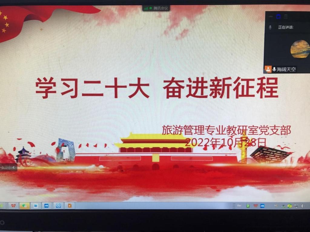 10月28日下午,旅游管理专业教研室党支部开展了以“学习二十大 奋进新征程”为主题的党日活动,活动由支部书记余兵主持,支部全体党员参加。