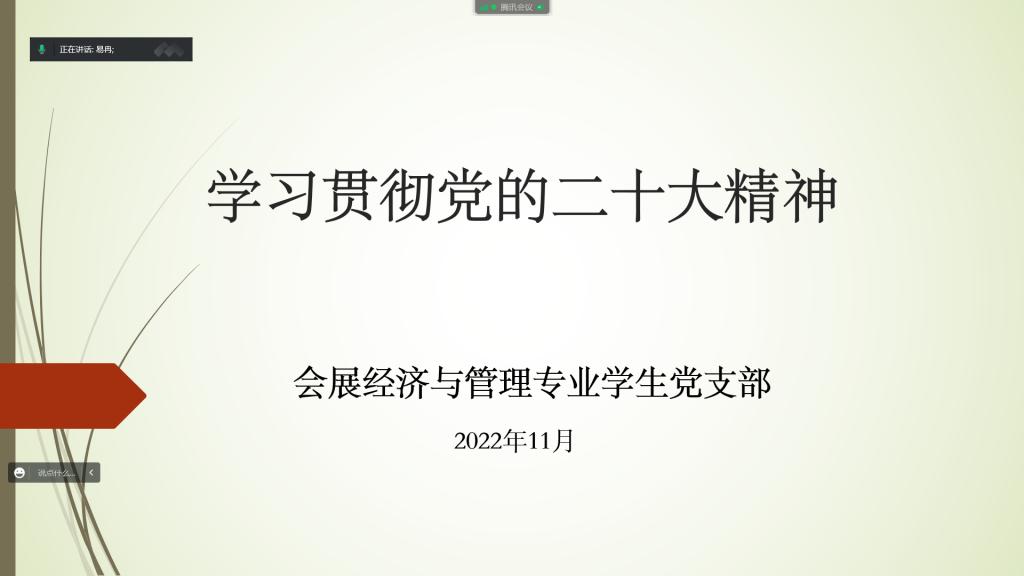 11月21日,会展经济与管理专业学生党支部线上开展“学习贯彻党的二十大精神”11月主题党日活动。会议由支部书记易冉主持。