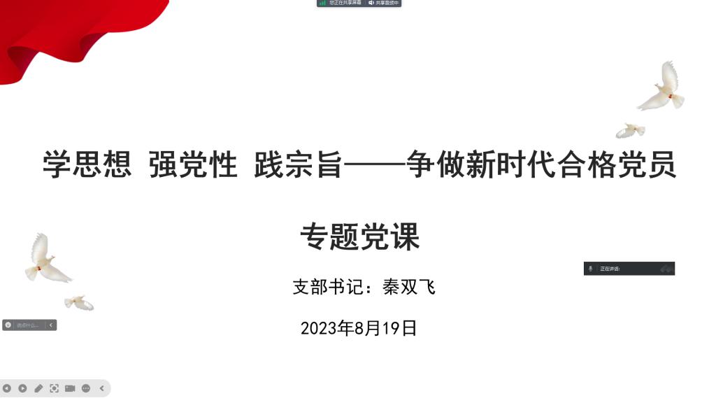 2023年8月19日,旅游管理专业学生党支部开展了以“学思想强党性践宗旨——争做新时代合格党员”为主题的专题党课。党支部书记秦双飞担任主讲,支部全体党员参加了会议。