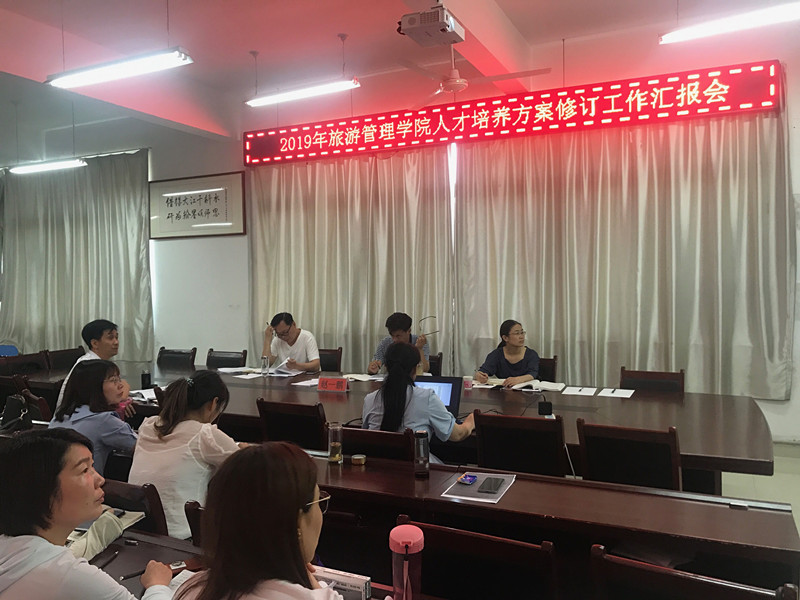 7月3日,旅游管理院在1C502举行本科人才培养方案修订工作汇报会,副校长赵一鹏,教学质量监控与评估中心主任王学增,教务处副处长张淮,旅游管理学院院长刘开华、各教研室主任、教学秘书及专业教师参加论证会。
