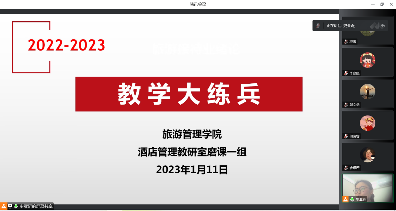 为进一步加强学院师资队伍建设,不断夯实教师教学基本功,提高教师教学水平,提升课堂教学质量,旅游管理学院于2023年1月11-13日组织开展线上教学“大练兵”活动,学院全体任课教师参加。