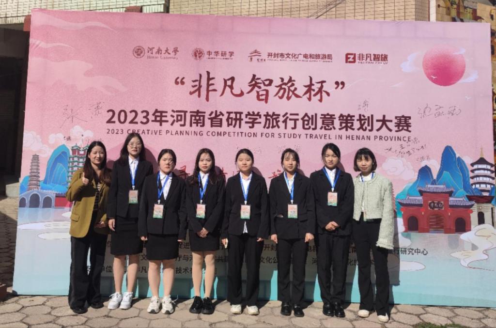 本次大赛由河南省文化和旅游厅指导,中华儿童文化艺术促进会研学旅行工作委员会、开封市文化广电和旅游局等单位共同举办,以“寻迹黄河,豫见中国”为主题。在决赛现场,21支参赛队伍分别从“风采展示、方案展示、现场答辩”三个方面展现了团队的方案创新理念。最终,经过4小时的激烈角逐,我院学子获得了河南赛区决赛优秀奖的成绩,并通过本次大赛汲取了宝贵的学习经验,展现了百折不挠的竞赛精神。