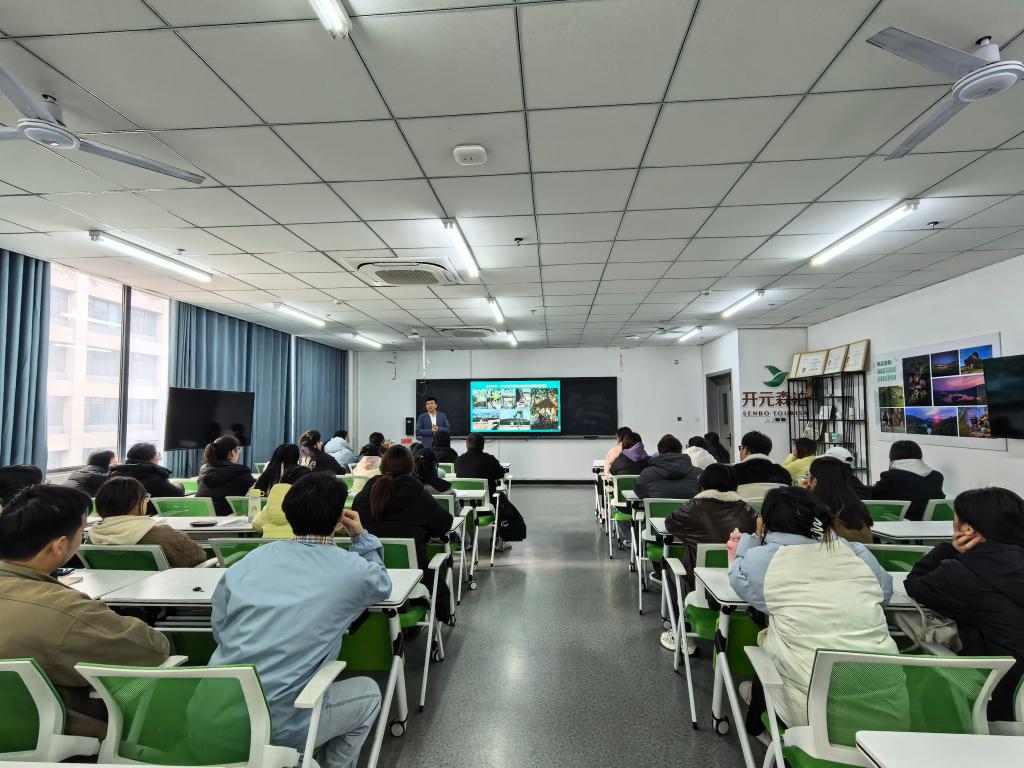 下午,陈鹏为在校的2024级和2022级开元菁英班学员授课。课前为大家发放了开元旅游产业学院基于企业运营实践编撰的学习资料。课上,陈鹏结合行业变革现状,分析了文旅产业变革下的人才需求,并指出大学生的职业准备路线,拓宽了学生的行业视野,使学生更加明晰了未来的发展方向与路径。