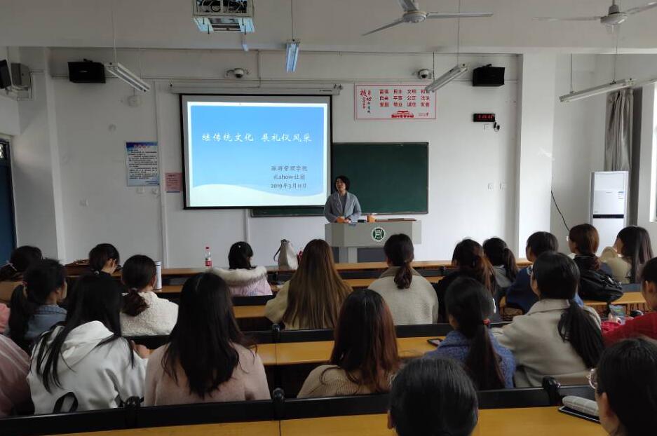 为传播中华文明礼仪之风,倡导和谐美好校园新风尚,展现旅游管理学院风采,3月11日中午,礼show社团指导老师陈婷在二教116开设礼仪之风讲座,礼show社团的会员参加了此次讲座。