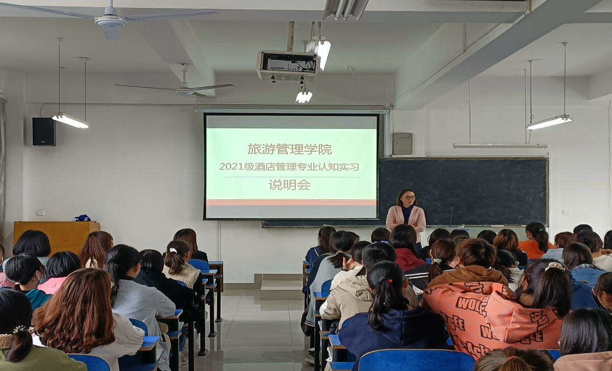 10月25日上午,酒店管理教研室在1C404教室召开认知实习说明会,史亚奇老师针对认知实习的重要性、学分构成、考核标准进行了说明,并对调研目标、实习报告、PPT汇报等环节进行了详细地讲解,重点落实分工安全保障任务,为专业认知实习的顺利开展做了较好的铺垫。