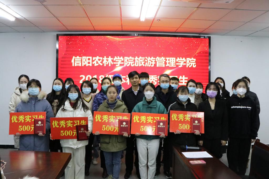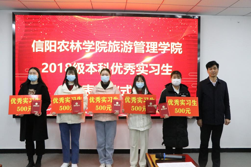 接下来,党总支副书记杜丽宣读了旅游管理学院2018级本科优秀实习生名单。霍娣作为优秀实习生代表进行发言,她总结了六个月的实习感想与收获,感谢学院精心组织安排的专业综合实习以及企业领导对实习生的关怀和帮助。最后,表彰大会在学院领导为优秀实习生颁发荣誉证书以及奖金的喜悦氛围中落下帷幕。