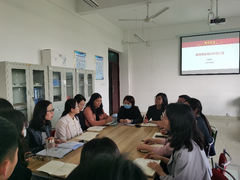 为了帮助教师深入理解课程思政的建设理念,提高教师开展课程思政的能力和水平,发挥好每门课程的育人作用,2021年5月18日,旅游管理教研室及会展经济与管理教研室分别组织赴长沙参加课程思政培训学习的青年教师,分享培训心得,以供其他专业教师能及时了解最新的思政理念与方法,更好地做到思政育人。活动由教研室主任王亮亮、周诗涛主持,旅游管理教研室及会展经济管理教研室全体老师参加会议。