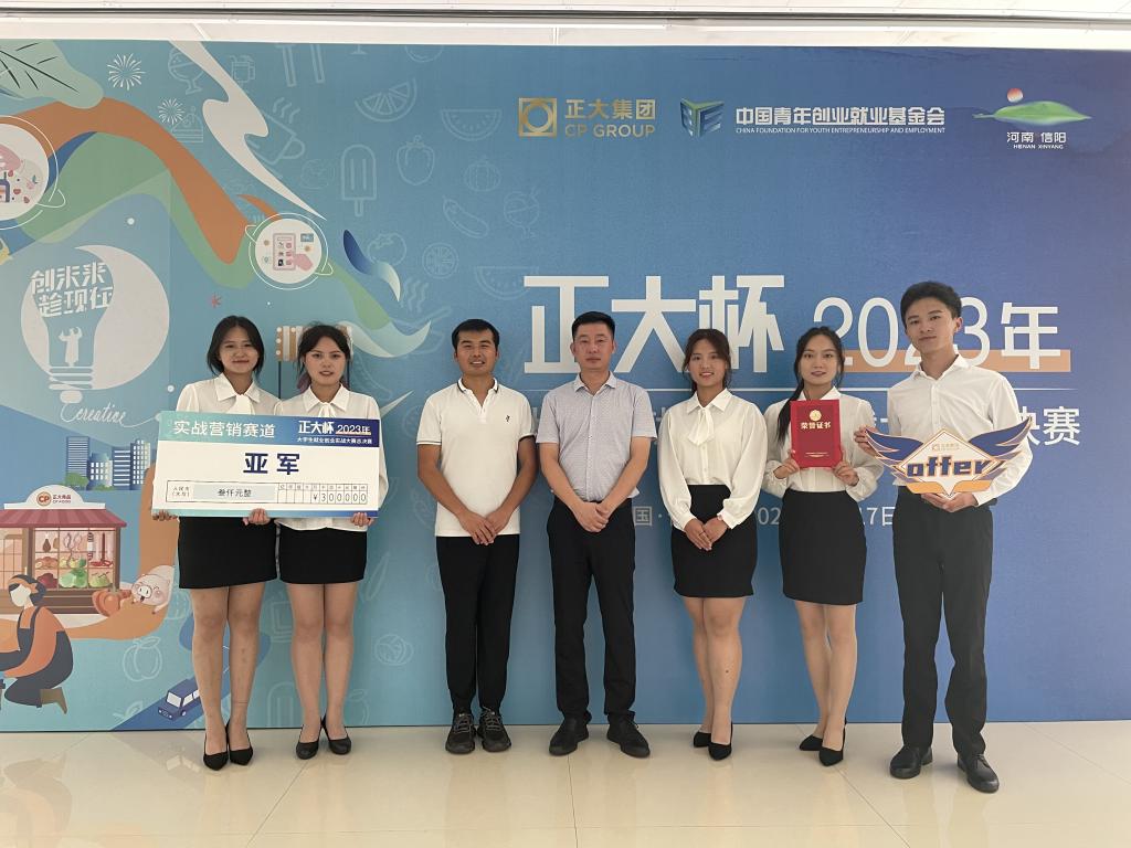 8月19日下午,由中国青年创业就业基金会、信阳市人民政府、正大集团联合主办的“正大杯”2023年大学生就业创业实战大赛总决赛经过两天的激烈角逐,圆满落下帷幕。旅游管理学院张博老师指导的“正气买买队”荣获实战营销赛道银奖。