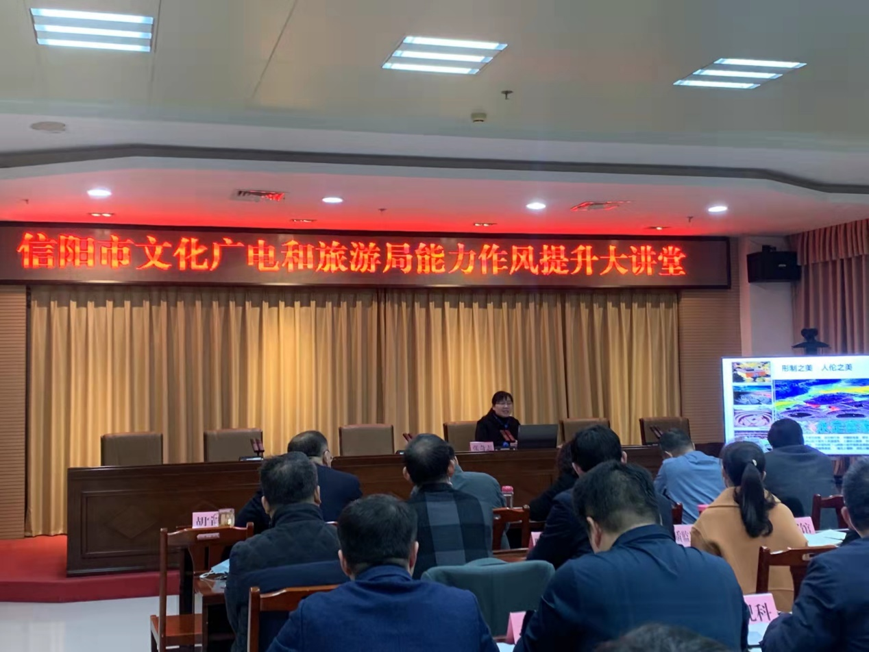 2022年3月3日,旅游管理学院副教授张奇志受邀为信阳市文化广电和旅游局“能力作风提升大讲堂”第一讲授课。市文化广电和旅游局机关干部、局属二级单位主要负责同志及机关工作人员50余人参加此次讲座。