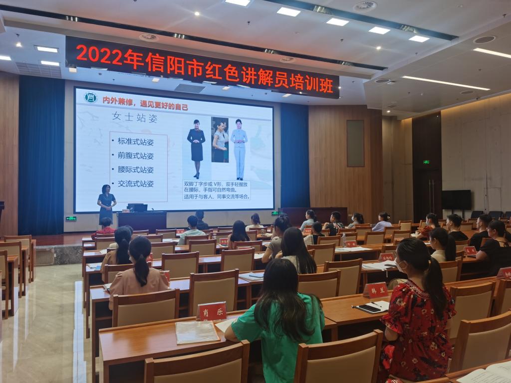 7月5日上午,2022年信阳市红色讲解员培训班暨红色故事讲解职业技能大赛开班开赛仪式在大别山干部学院举行。我院陈婷副院长受邀担任评委及赛前礼仪培训老师。