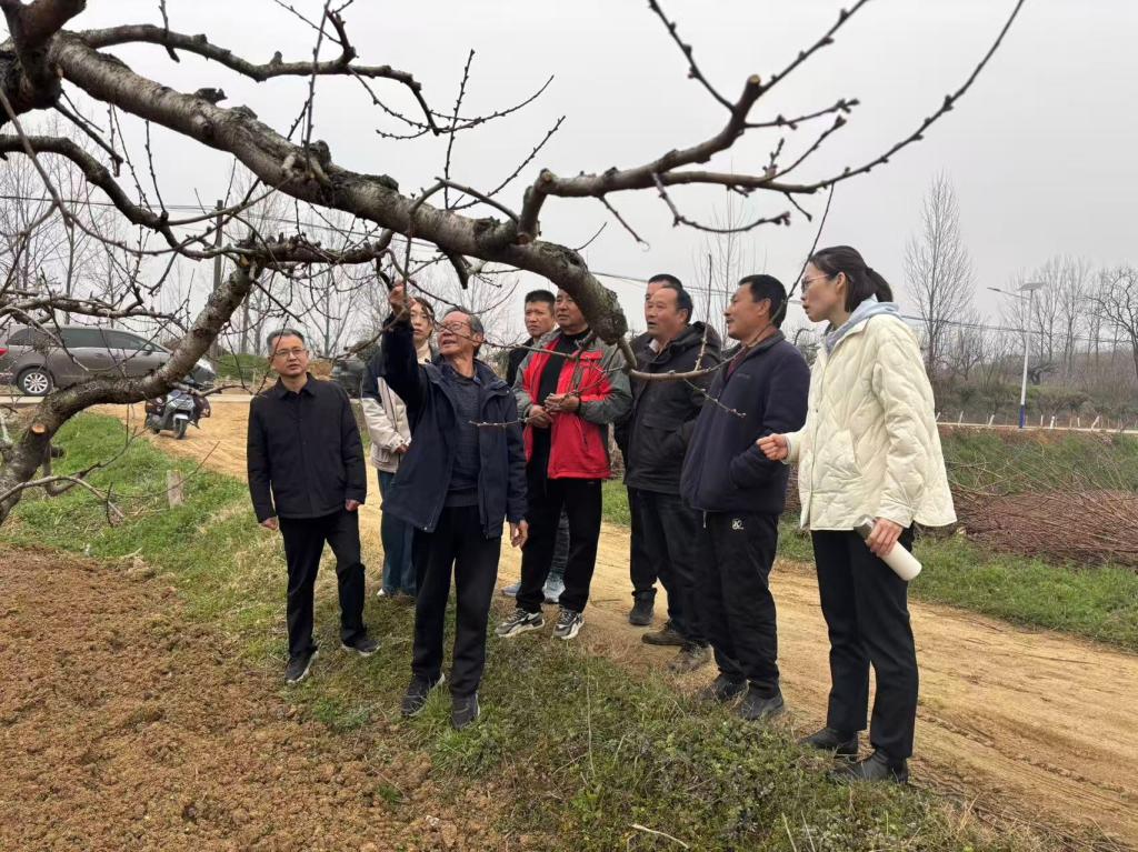 理论培训结束后,服务团随即前往社楼村万亩桃园基地开展现场指导,针对桃农反映的修剪技术不科学、病虫害防治效果不佳等问题,范宏伟教授现场演示桃树整形修剪的标准操作,重点讲解夏季修剪的核心技术要点。此外,针对当地桃园普遍存在的销售受限问题,服务团围绕冷冻基地建设、线上直播带货、文旅场景融合等方向出谋划策。