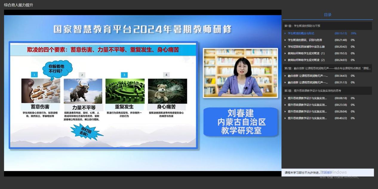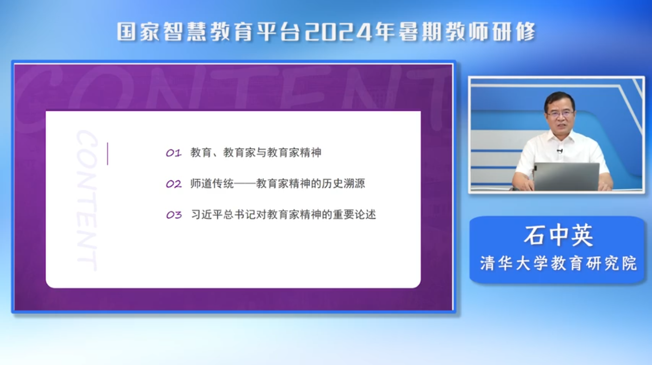 2024年暑假教师研修主要分为七个主题课程,分别为《大大弘扬教育家精神》、《强化国家安全与文化自信》、《数字素养与技能提升》、《科学素养提升》、《心理健康教育能力提升》、《综合育人能力提升》以及《教师教学能力专业发展》,培训内容服务于各级各类教师的学习需求。通通过培训,整体取得了较好的学习效果。培训总结如下: