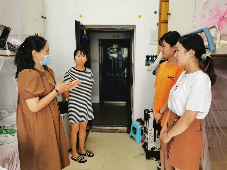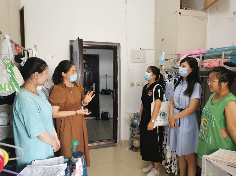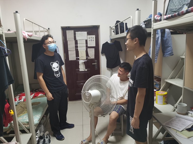 为进一步做好我院2020届第二批返校毕业生返校后、离校前的各项教育和管理工作,7月3日中午,旅游管理学院党总支副书记杜丽、组织员张洋、团总支书记王芳以及毕业生辅导员罗志涛一行深入返校学生宿舍进行走访慰问。