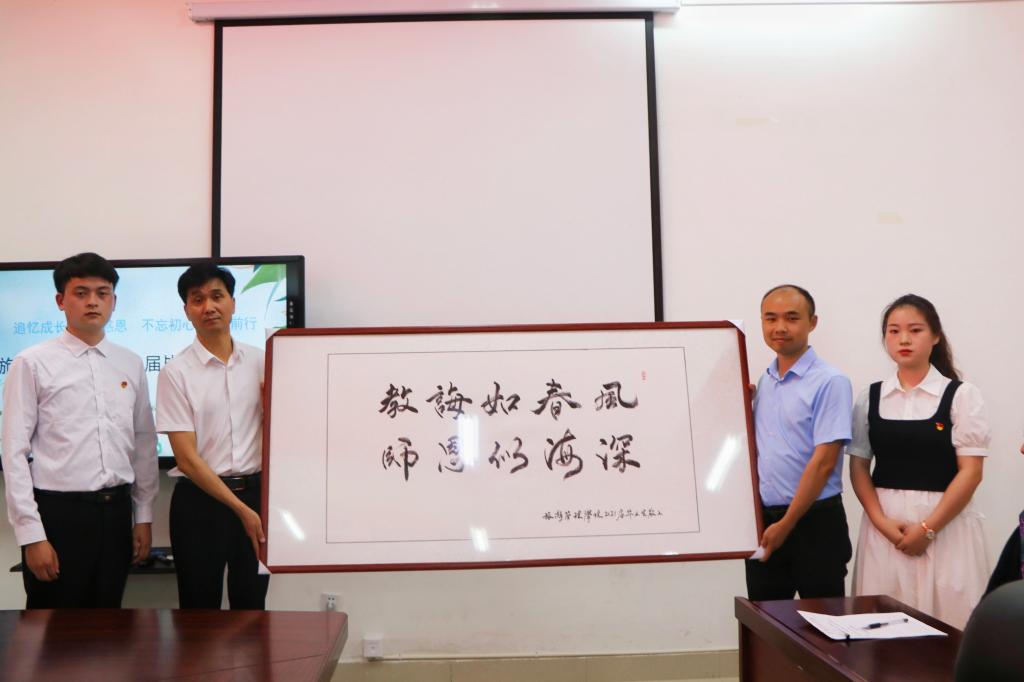 投我以桃,报之以李。毕业之际同学们以各种方式倾情表达对母校、对恩师的培育之恩。参加座谈会的袁俊伟和张蒙两位同学代表学院2021届全体毕业生向学院赠送了“教诲如春风 师恩似海深”的书法牌匾,表达对学院、对老师们的感谢和不舍。其他同学精心录制了感谢师恩视频,使在场老师深受感动。老师们也为毕业生送上一份特殊的礼物,将同学们的一张张照片做成PPT,熟悉的校园、精彩的活动、忙碌的实习、紧张的考试等场景,再现了同学们在读期间学习和生活的点滴,引起了同学们的强烈共鸣。毕业班辅导员于洋和张春焕老师现场朗诵了《毕业了,我想对你说!》,表达出老师们的依依不舍,浓浓爱意与诚挚的祝福,在场的同学们纷纷表示这将是最珍贵的毕业礼物。