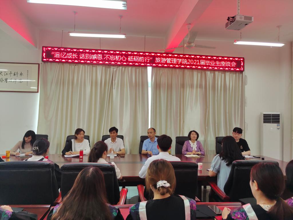 为进一步引导毕业生安全、文明、和谐、有序离校,强化诚信和感恩教育,积极营造毕业季和谐温馨、文明尚善的校园文化氛围,6月1日上午,旅游管理学院在1C502召开了以“追忆成长 话别感恩 不忘初心 砥砺前行”为主题的2021届毕业生座谈会。院长刘开华、党总支书记陈建国、副书记杜丽、副院长陈婷、团总支书记王芳及毕业班辅导员、学生党员、学生干部及普通学生代表参加了会议。会议由杜丽主持。