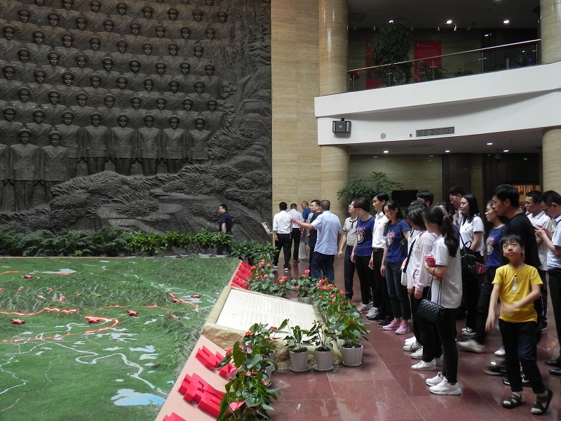 在鄂豫皖苏区革命烈士陵园,先后参观了革命烈士事迹陈列厅、纪念碑广场、英烈广场。一张张发黄的图片、一个个珍贵的物件、一个个饱含故事的场景,生动展现了先烈们的光辉战绩,使大家仿佛回到革命先烈们曾经的艰苦岁月,深切感受到先辈们不怕牺牲、勇往直前、视死如归的革命精神,深深被他们的英勇气概所折服。面对镌刻着鄂豫皖三省廿六县万名革命先烈英名的英名墙,开展了重温入党誓词和正党徽活动。靳潢要求师生党员要不断感念革命先烈为国为民的高尚情怀,不断学习老一辈无产阶级革命家追求理想、奋斗不息的革命精神。沿着他们的足迹,进一步坚定共产主义理想信念,尽职履责,砥砺前行,为实现中华民族伟大复兴的中国梦贡献自己的力量。随后。接着大家参观了鄂豫皖苏区首府革命博物馆,驻足瞻仰一位位革命烈士和众将军的风采。靳潢带领大家瞻仰了许世友等将军的赫赫战功,通过学习将军的生平事迹,领略了将军传奇的人生经历,很多同志都为将军“忠孝勇廉”的情怀而动容。通过参观,使得全体党员同志更加坚定了共产主义理想信念,大家纷纷表示革命历史不能忘记,光荣传统需要传承。要弘扬革命精神,坚定信念、忠诚履职,不忘初心、继续前进。