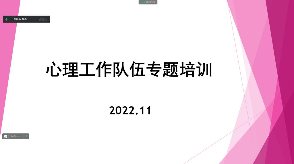 为更好的引导同学们积极面对心理问题,了解心理健康方面的相关知识,旅游管理学院于11月2日晚线上开展心理工作队伍专题培训。此次培训由院心理专员易冉主讲,院学生会心理部成员、2022级各班心理委员、宿舍心理信息联络员参加。