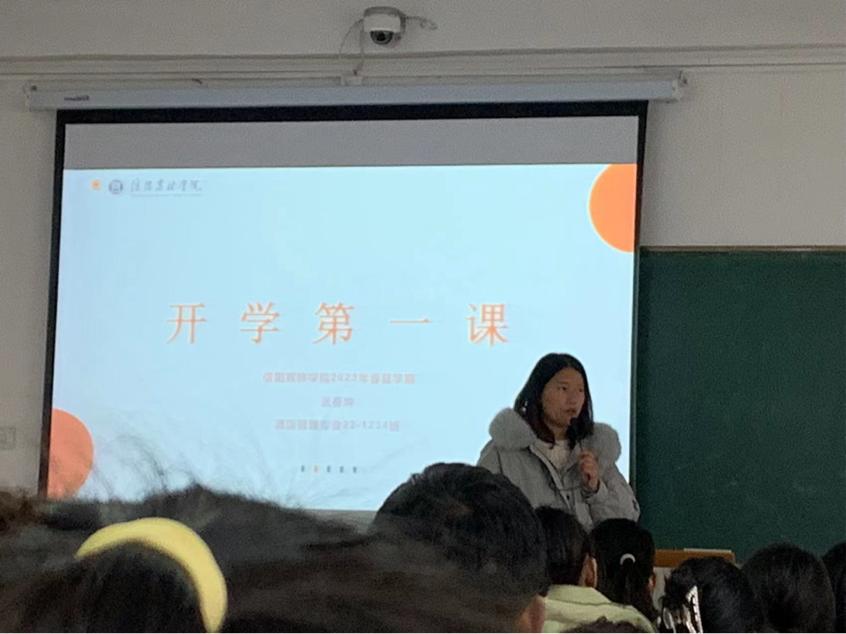 各班辅导员分别从人民力量团结、中国经济、青年奋斗、信农青年、时代责任这5个方面进行了2023年春季的“开学第一课”。首先是从三年疫情着手,道出了疫情影响下的中国人民团结一心,积极抗击疫情,同时面对网络舆论信息,中国人民有了更明显的识别能力。通过种种举例以激发同学们的团结意识。其次具体介绍了现行中国经济的发展状况,并与同学们对于寒假期间经济复苏现象展开了激烈的分享交流。然后从“青年应该怎么做”展开演讲,作为新时代青年要树立正确的人生观,积极创造有意义的人生,能够不断磨练自己的本领,抓住机遇。同时从学校角度,提出作为一名信农的学子,要有底气。最后各班辅导员讲解了国际形势复杂严峻,国家安全来之不易,守护国家安全,人人有责。