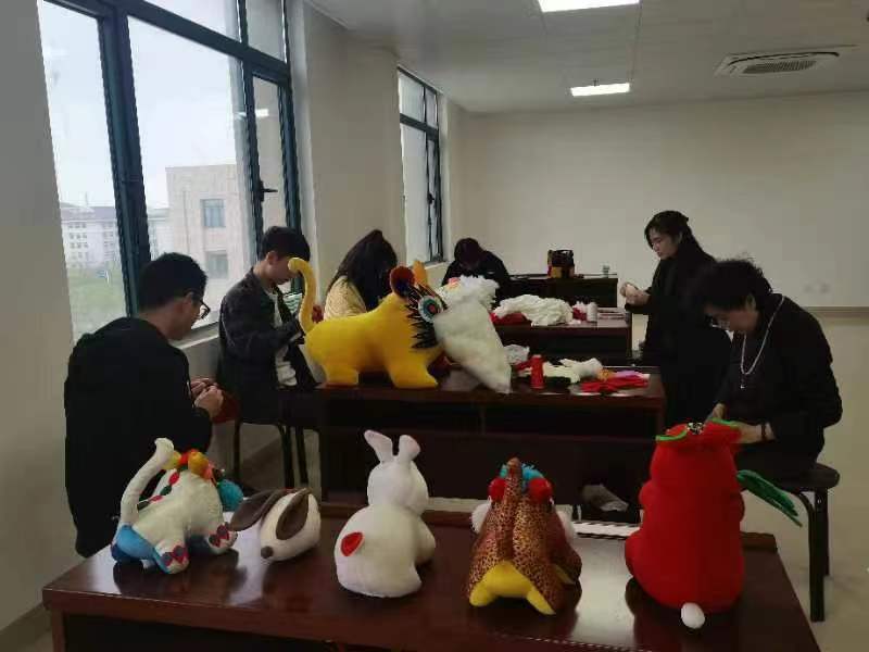 活动中,同学们在老师的指导下,制作出了栩栩如生的布艺老虎和吉祥兔。布老虎是中国汉族民间普遍流行的儿童玩具,也是很多人喜欢的民间工艺品,常作室内摆设、馈赠礼品及个人收藏品。虎为百兽之王,民间认为虎勇猛雄武,是健康的象征,人们用“虎头虎脑”“生龙活虎”比喻身体强健。制作布老虎的材料及工艺因人而异,较常见的是用棉布缝制成形,内部装填棉花或香料,表面再用布贴、刺绣等手段描绘出虎的五官和纹样。同时,今年是兔年,制作布艺吉祥兔也寓意着“前途(兔)似锦”、“大展宏图(兔)。”