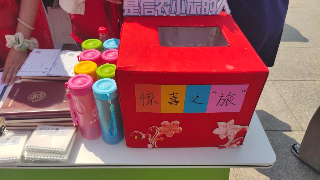 本次惊喜之“旅”活动的奖品设置诚意十足,有旅游管理学院的专属定制水杯、定制笔记本等,在学院志愿者的指引下,新生们以抽奖的形式抽取奖品,这份给专属的人定制的专属惊喜使每位新生都收获满满,喜笑颜开。