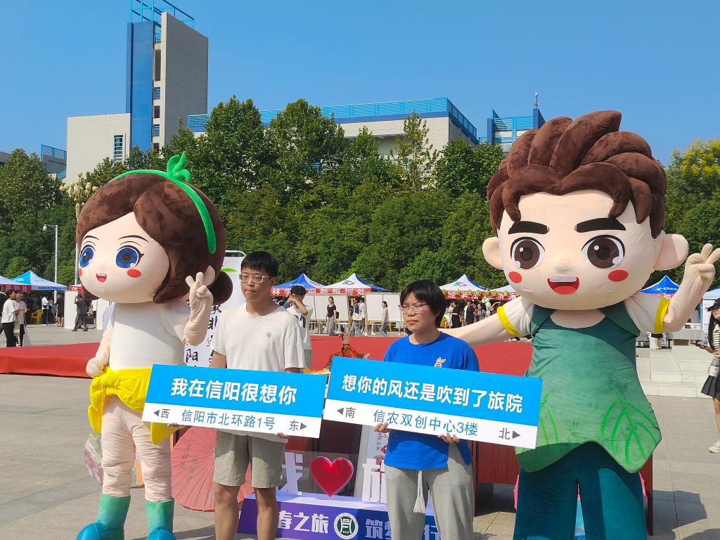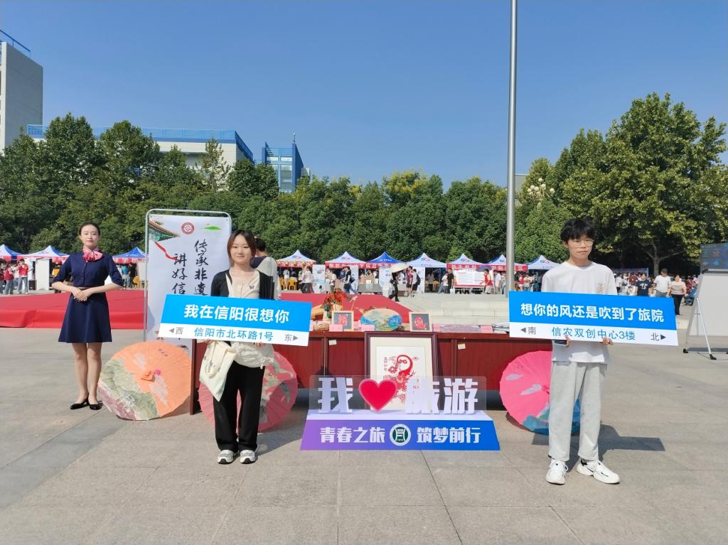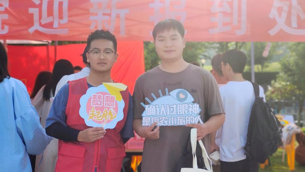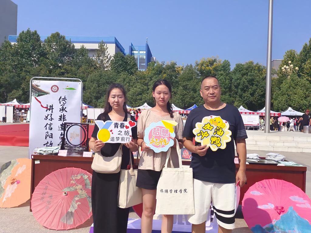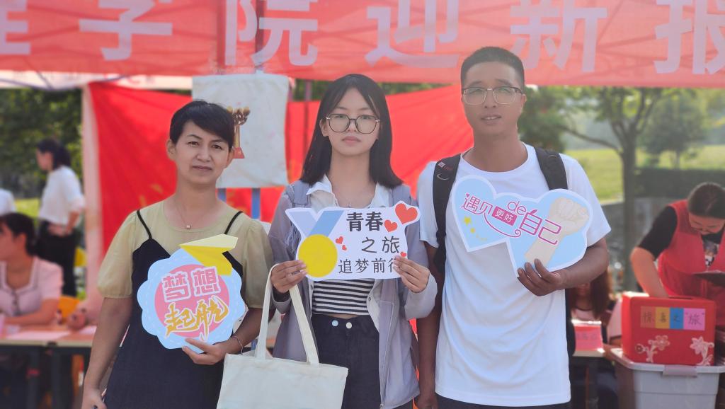 为欢迎新同学,旅游管理学院精心准备迎新系列活动,在“我Love旅游——青春之旅、筑梦前行”合影区域,新生和家长们纷纷拿起“我在信阳很想你”“想你的风还是吹到了旅院”“我爱信农”“遇见更好的自己”“梦想起航”“少年强则国强”等标语的手举牌合影留念。