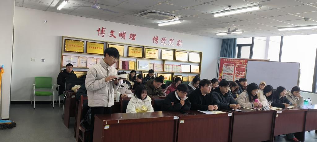 党总支副书记池水婧代表学院对同学们表达了新年的祝福,并围绕学生返校情况、安全教育管理、心理健康教育、学团特色项目等工作进行了详细部署,着重强调学生寝室用电安全和日常交通安全,要求各班级学生干部要高度重视。随后,就各班级、部门提出的学生学习生活问题进行解答。