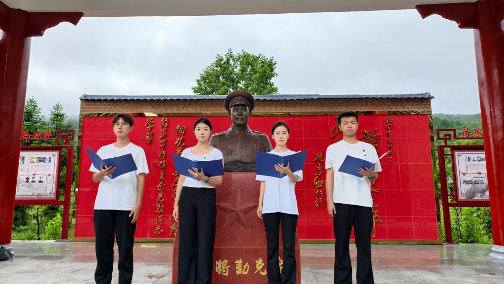 实践团还专程前往吴上楼村余克勤将军故里,接受深刻的革命传统教育。师生们怀着崇敬之心瞻仰将军雕塑,驻足于记录其光辉事迹的宣传展板前,深切体悟革命先辈的崇高理想与坚定信念,革命精神深深感染了在场每一位师生。在这个红色教育基地,学生们还学以致用,化身红色故事讲述者,面向师生和当地群众,清晰流畅的讲解余克勤将军的英勇事迹。活动在题为《大写的中国》的集体朗诵中推向高潮,激昂的诵读声在将军故里回荡,传递着青年一代对祖国深沉的热爱与建设强国的青春誓言。