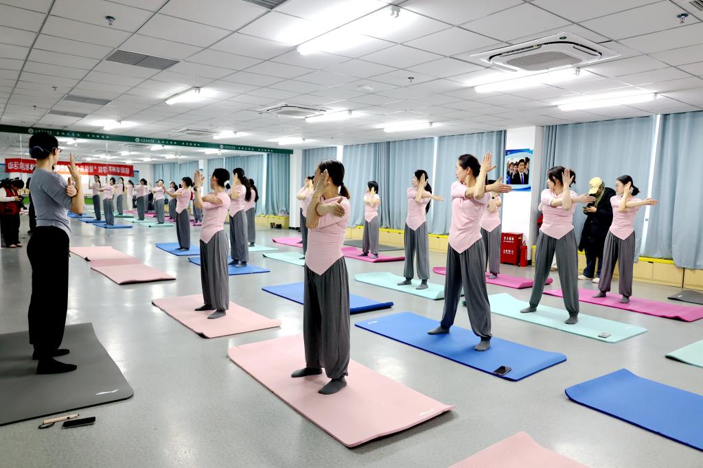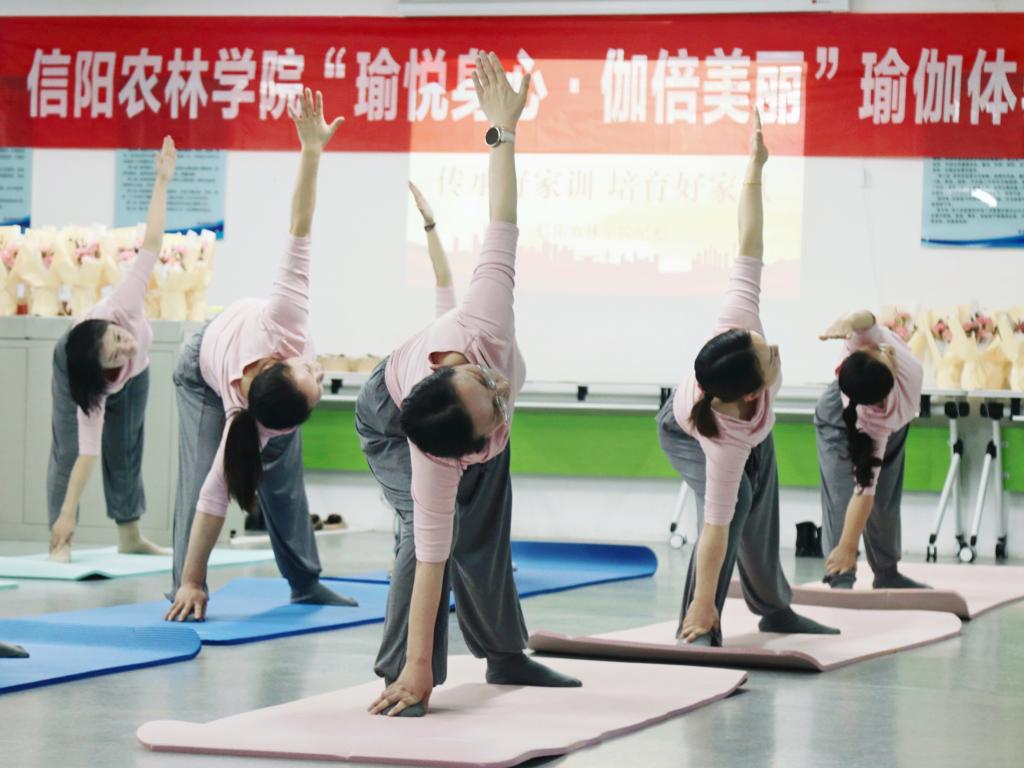 活动开始之前,校纪委副书记李娜以“培育好家风.弘扬好家教”为题,做了简短讲话。活动伊始,为预防运动损伤,在旅游学院代沐冉老师的带领下,参与体验的教职工们进行了头部转动、肩部环绕等热身运动。接着,由易到难开启各类瑜伽体式,如山式、三角式、战士一式、战士二式、四角板凳式、幻椅式、简易坐等,让大家感受身体的伸展与发力。随后,通过呼吸调节和冥想放松,帮助参与者缓解压力、增强身体柔韧性。参与活动的女教职工纷纷表示,此次活动不仅让她们体验到了瑜伽的魅力,还感受到了学校工会对女性教职工的关怀与重视。