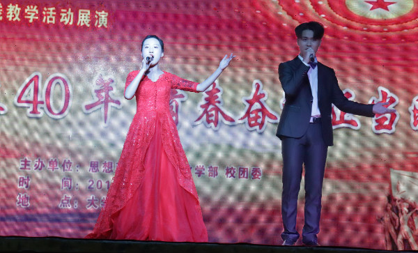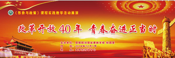 习近平总书记指出:“改革开放是党在新的历史条件下领导人民进行的新的伟大革命,是决定当代中国命运的关键抉择。”为深入学习宣传贯彻改革开放精神,12月7日晚由思政部与校团委联合举办“改革开放40周年,青春奋进正当时”《形势与政策》课程实践教学展演活动,在大学生活动中心成功举办。党委副书记扶庆、校团委书记王鹏、思政部主任邱兴平以及校团委、思政部全体教师出席了本次活动。