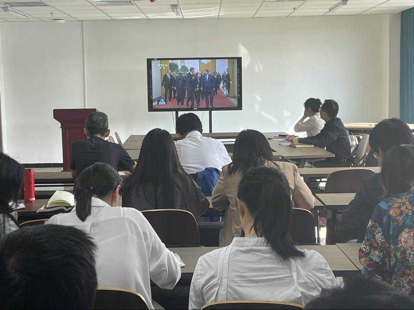 首先,与会教师集体学习习近平总书记在中国国际友好大会暨中国人民对外友好协会成立70周年纪念活动上的重要讲话精神,并围绕习近平外交思想交流学习心得体会。