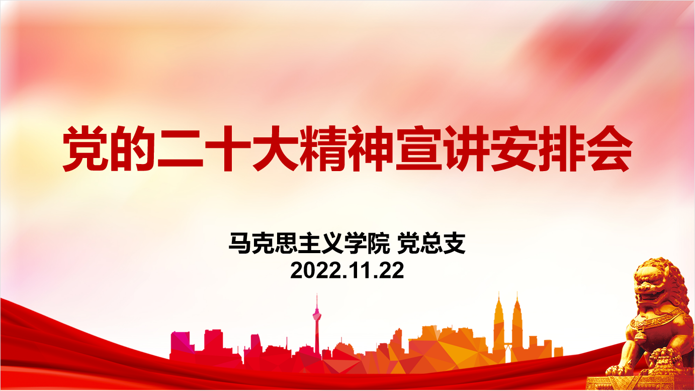 邱兴平要求,马克思主义学院宣讲团成员要深刻认识党的二十大精神宣讲工作的意义,认真贯彻好学校的部署要求,以强烈的政治责任感和良好的精神状态做好宣讲工作,明确任务认真备课扎实开展宣讲工作,把好导向快速行动完成宣讲任务,把党的二十大精神讲清楚、讲明白、讲透彻,切实增强宣讲的吸引力和感染力,帮助全校广大党员干部群众不断加深对党的二十大精神的理解和把握,推动党的二十大精神家喻户晓、深入人心。(马克思主义学院 熊峥)