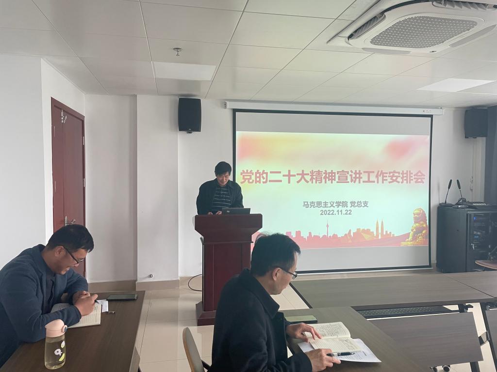 11月22日,我院召开党的二十大精神宣讲安排会,马克思主义学院党总支书记、院长邱兴平主持会议,学院全体思政教师参加会议。