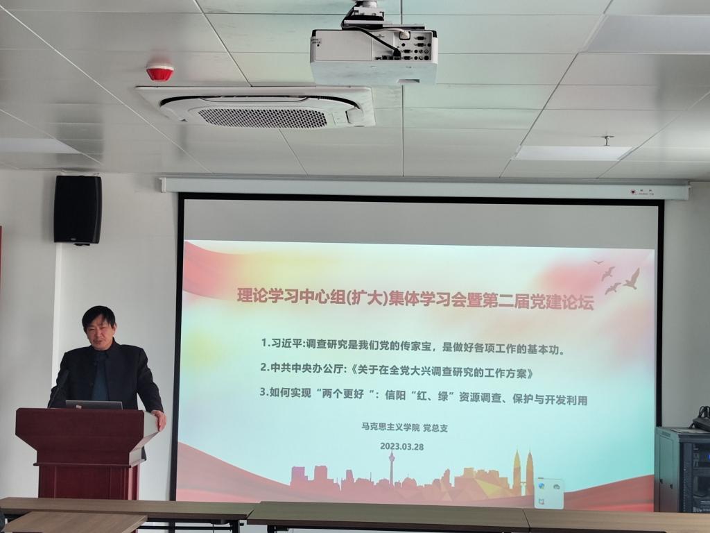 3月28日下午,马克思主义学院党总支在学术交流中心509会议室召开理论学习中心组(扩大)会议暨第二届党建论坛,会议由党总支书记、院长邱兴平主持,全体党员参加会议。