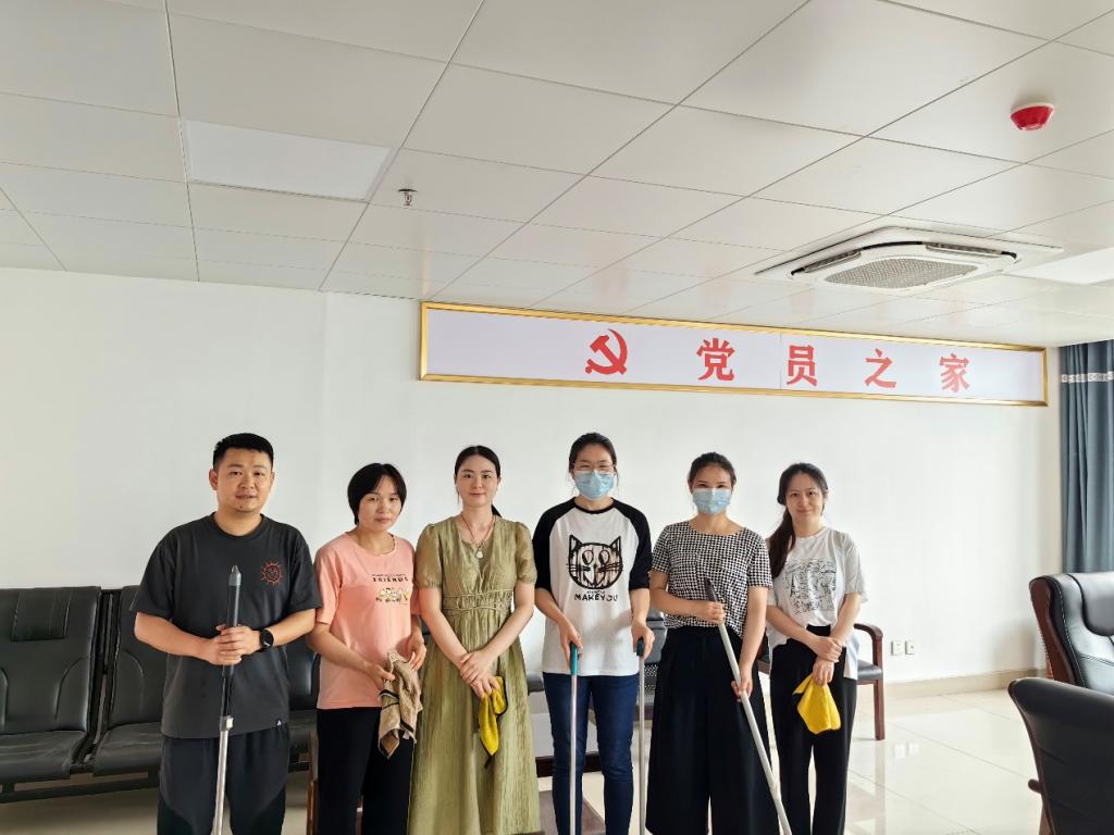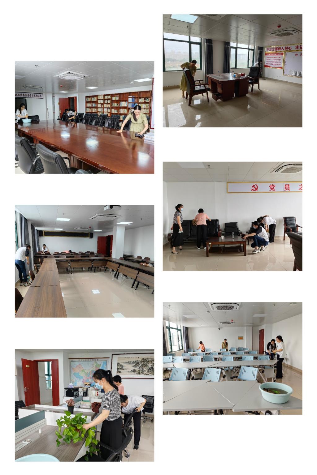 2023年6月19日上午,马克思主义学院教师第三党支部组织全体党员在学院开展“卫生大扫除,服务我先行”爱国卫生运动主题党日活动。