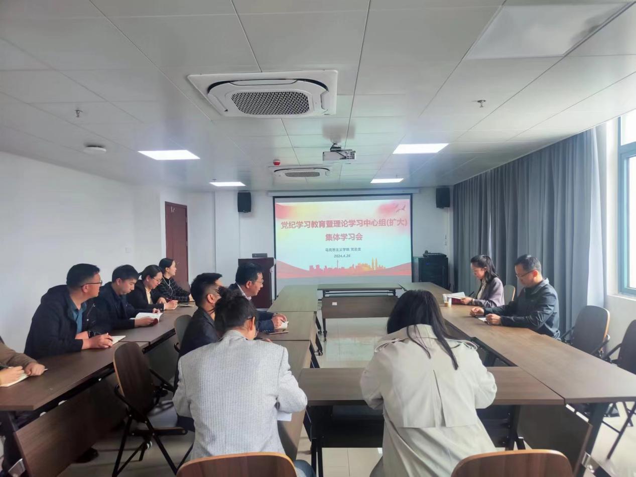 4月28日,马克思主义学院在509会议室召开党纪学习教育专题会暨理论学习中心组(扩大)集体学习会,学院领导班子成员、科级干部、党支部书记、支部委员等参加会议。会议由学院党总支书记王晓明主持。