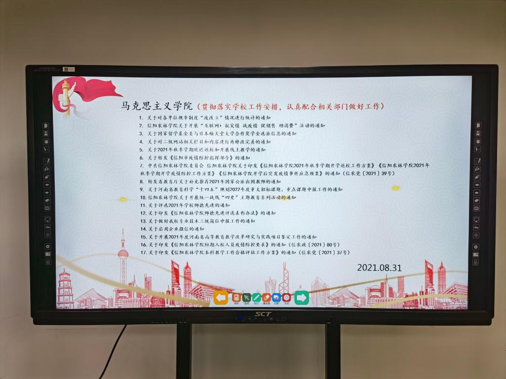 2021年8月31日下午,马克思主义学院在综合办公楼304会议室以“人生的结果=思维方式×热情能力(专注度、投入度)×能力——做到‘六要’、坚持‘八统一’,搞好学校本科教学合格评估”为主题开展“迎评促建”活动。会议由院长邱兴平主持,学院全体教师参加。