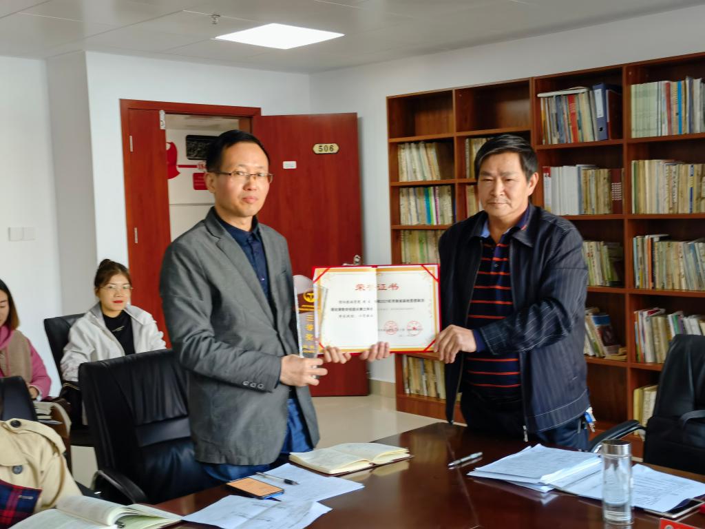 随后,进行了省级教学技能竞赛颁奖仪式,院长邱兴平为周俊、陈帅名颁奖。