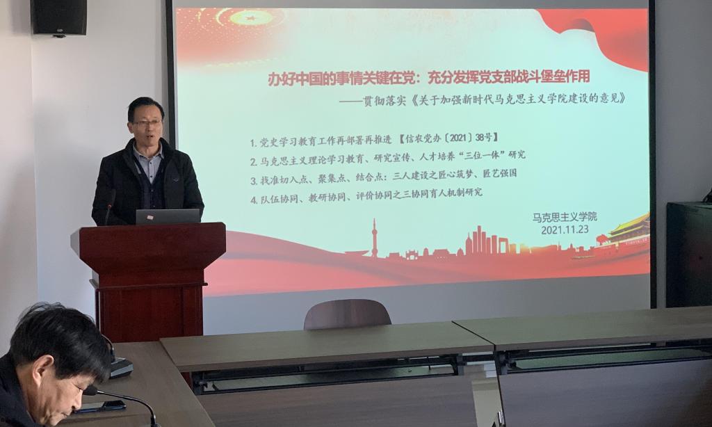 2021年11月23日下午,马克思主义学院在学术交流中心509会议室开展了以“办好中国的事情关键在党:充分发挥党支部战斗堡垒作用”为主题的“高质量发展”活动。会议由院长邱兴平主持,学院全体教师参加。
