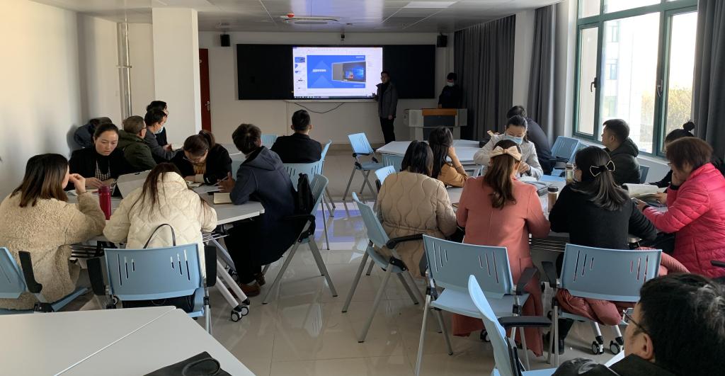 全体教师先在513智慧教室参加锐捷公司智慧黑板的使用培训。智慧黑板以互动教学系统为核心,配备授课端、备课端、移动端、WEB端等,借助丰富的资源和多样化的教学工具,使互动式教学贯穿课前、课中、课后,激发学生积极性和主动性,助力教学效果倍增式提升。