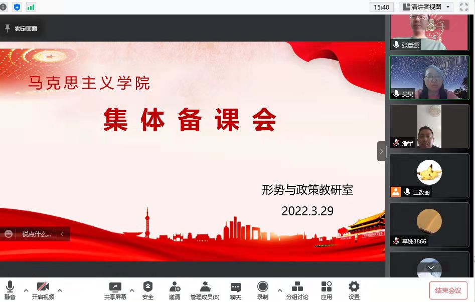 3月29日下午,形势与政策教研室通过腾讯会议召开2022春夏学期第四次集体备课会。会议由教研室主任吴昊主持,全体专兼职教师参加。