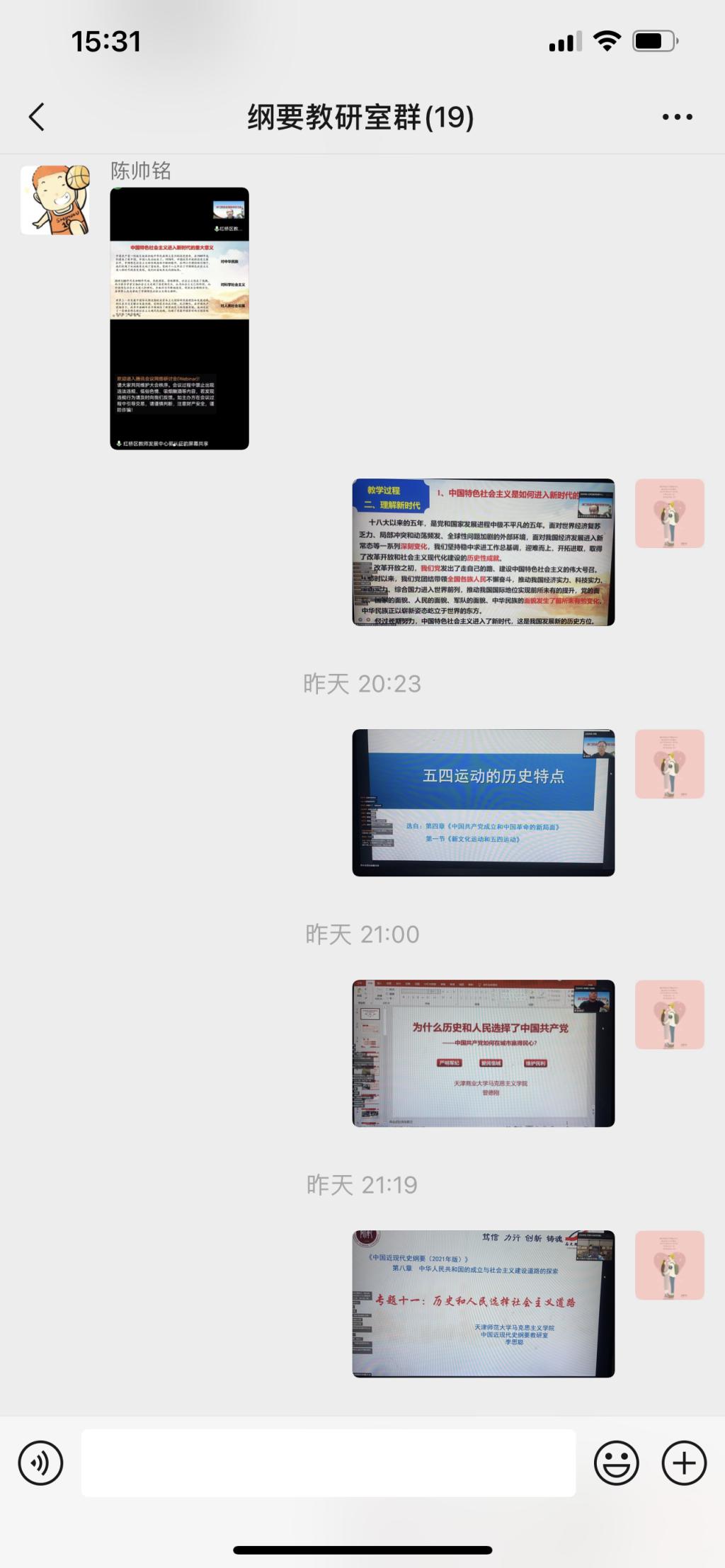 本次名师活动主要分为两部分,首先由北京大学马克思主义学院教授,博士生导师仝华作《如何从总体上把握好“纲要”课教学》的报告;其次由天津市红桥区教师发展中心高中思想政治教研员郭从征以:《中国特色社会主义进入新时代》为题进行展示;广西民族大学马克思主义学院副院长、副教授梁罡:《五四运动的历史特点》为题进行展示;天津体育学院马克思主义学院刘秀英副教授展示了:《为什么说中国战场是世界反法西斯战争的东方主战场?》;天津商业大学马克思主义学院讲师曾德刚展示了:《为什么历史和人民选择了中国共产党》;天津师范大学马克思主义学院副教授,硕士生导师李思聪:《历史和人民为什么选择社会主义道路》进行讲解;最后,南开大学马克思主义学院教授,博士生导师张健以《以大历史观深刻认识党的第三个历史决议的重大意义》进行讲解。“纲要”课教师参加了此次线上活动。活动结束后老师们纷纷表示很受启发,在教学上有了新思路、新方法,受益匪浅。