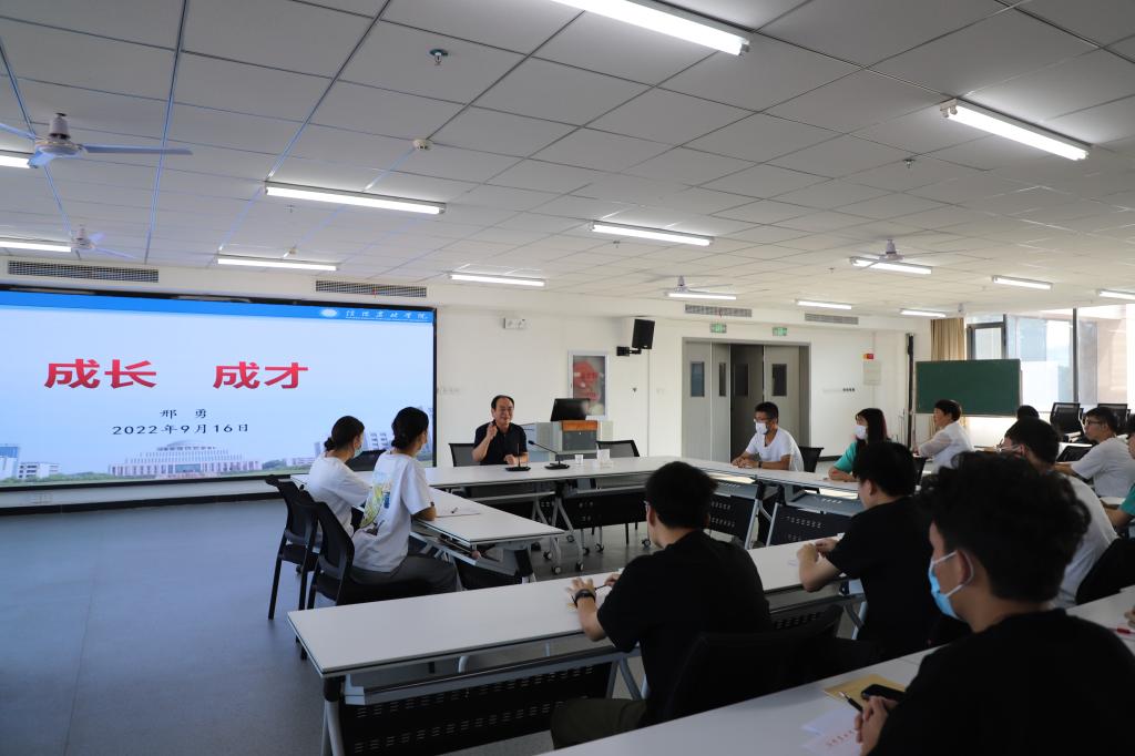 9月16日上午,校长邢勇在双创中心618教室,以“成长,成才”为题,为信息工程学院2021级“数据科学与大数据技术”专业学生讲授了一堂精彩纷呈的思政课。