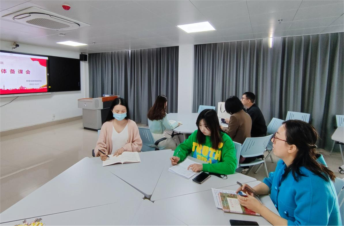 为深入学习贯彻党的二十大精神,让党的二十大精神“带着热气”进课堂。10月21日下午,形势与政策教研室在学术交流中心513智慧教室召开2022秋冬学期第五次集体备课会,全体专兼职教师参加,会议由教研室主任吴昊主持。
