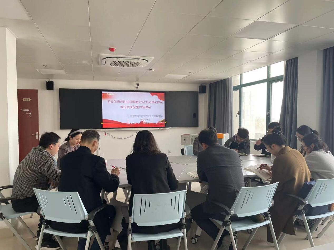 3月28日下午,毛泽东思想和中国特色社会主义理论体系概论教研室在学术交流中心513智慧教室召开集体备课会,全体专兼职教师参加,会议由教研室主任卫飞主持。